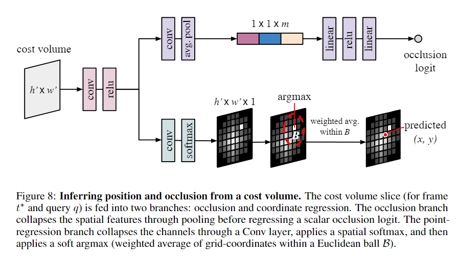 - 추적된 point가 visible( \(\mathcal{V}_t = 1\) ) 한지 occluded( \(\mathcal{V}_t = 0\) )한지 나타내는 출력 값