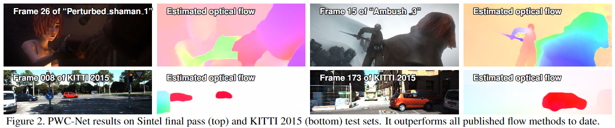 - MPI Sintel final pass와 KITTI 2015 benchmarks 데이터에서 기존에 제안된 모든 방법론들 보다 뛰어난 성능 확보