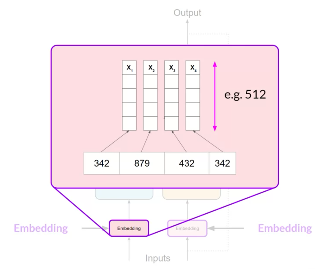 - 위 예를 보면, 각 단어 토큰들이 512크기의 벡터로 Embedding 되었음을 볼 수 있음